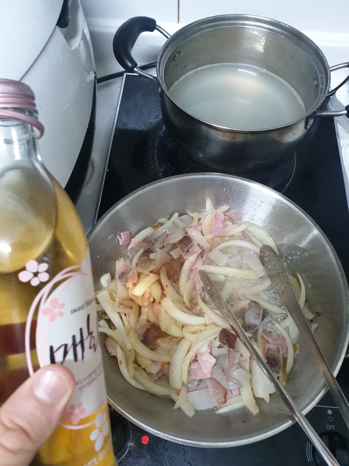 뭔가 레시피에 적혀있지않지만 잡내를 없애준다는 느낌으로 매화수를 넣어줘봤습니다.