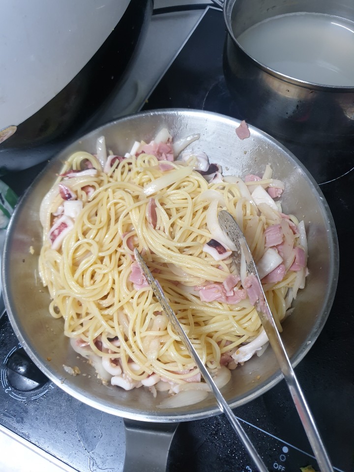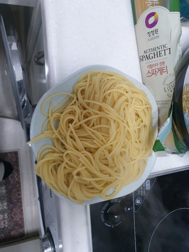 닭가슴살까지 넣은뒤 육해공 파스타라고 이름붙혀도 됐을거같습니다.
