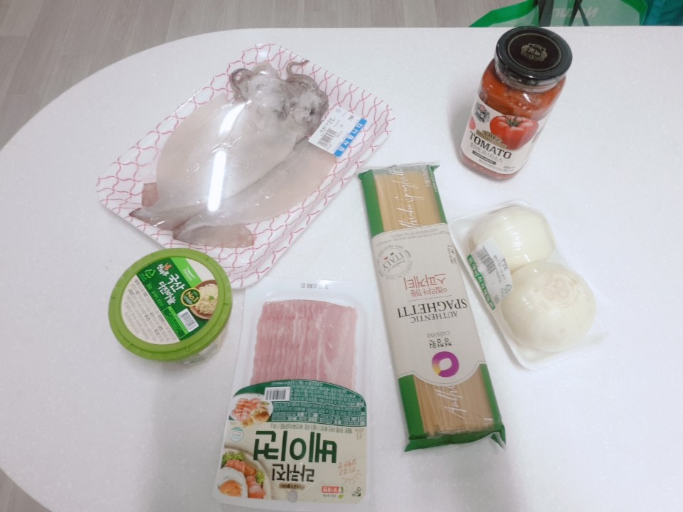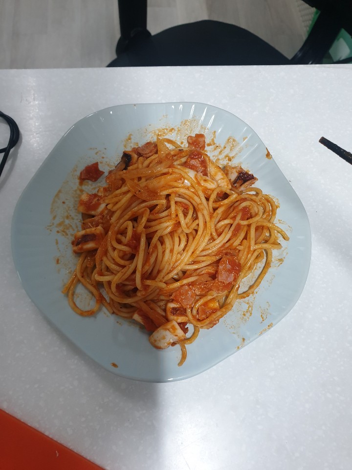 네 해물 파스타라고하지만 사실 오징어 하나들어갑니다.