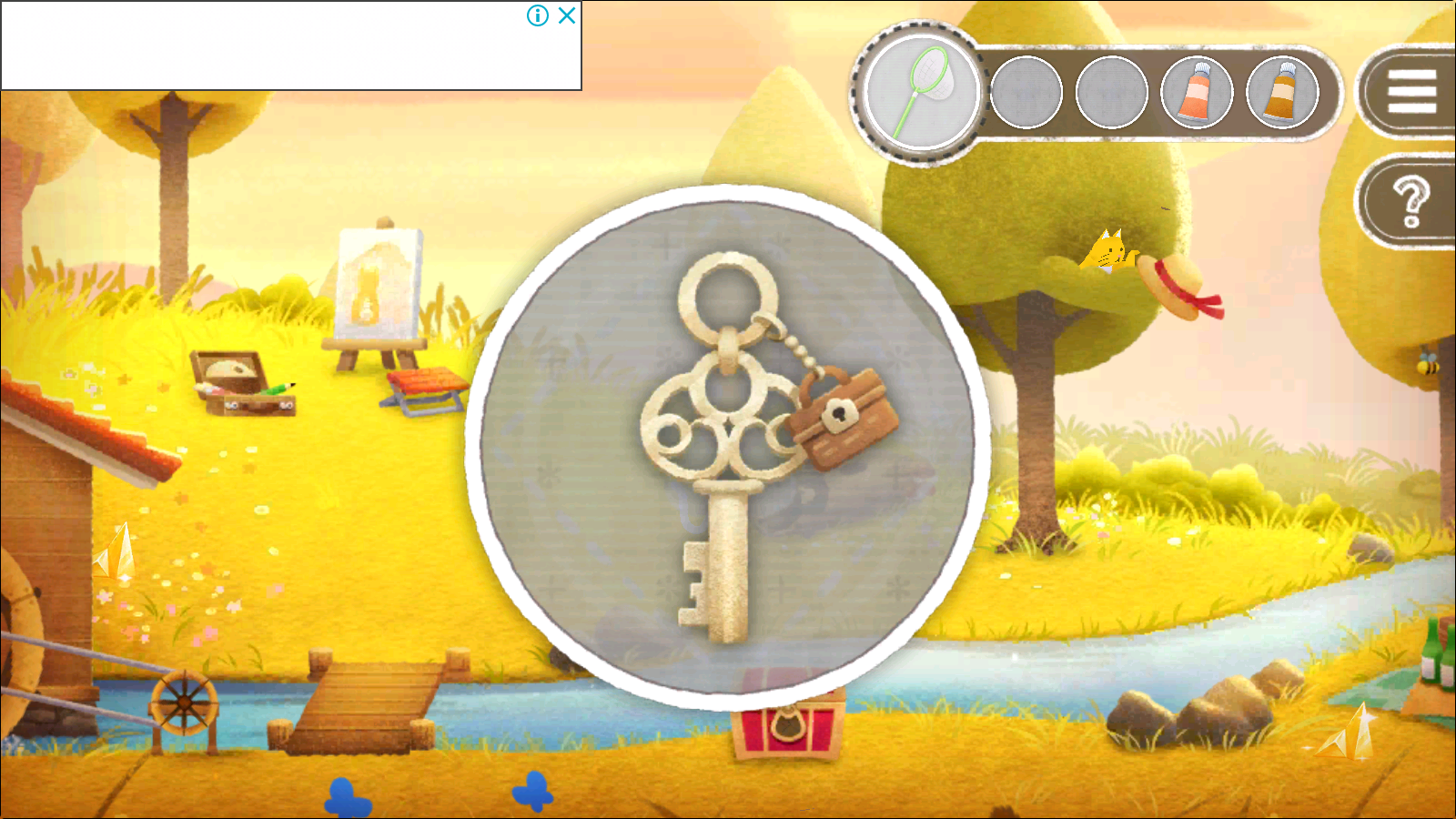 잠자리채는 나비를 잡거나, 아까 건너편 돌 부리에 걸려 있던 무언가를 주우면 될것 같습니다.