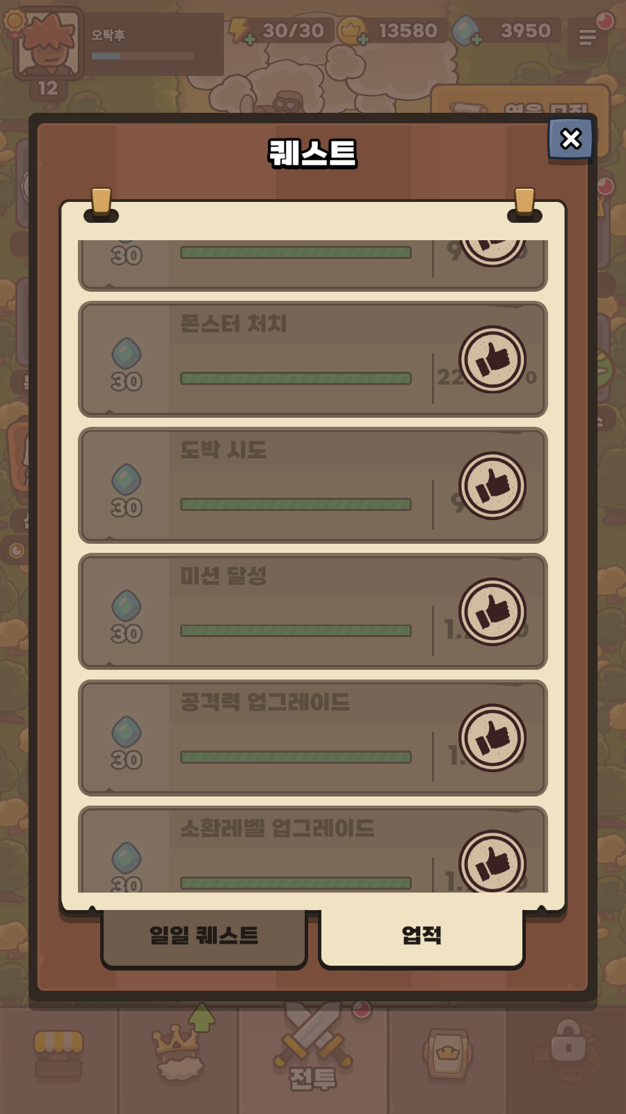 초반 보석으로 번개를 사도 손해가 안날거라 생각했지만 업적이 어느 순간 끝나더라고요.