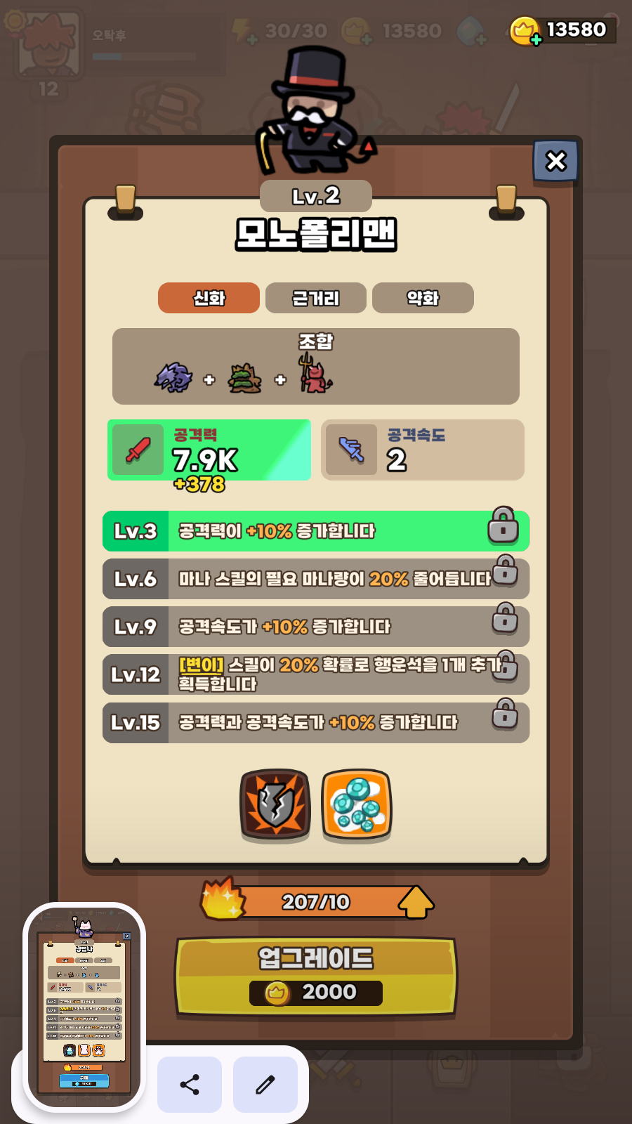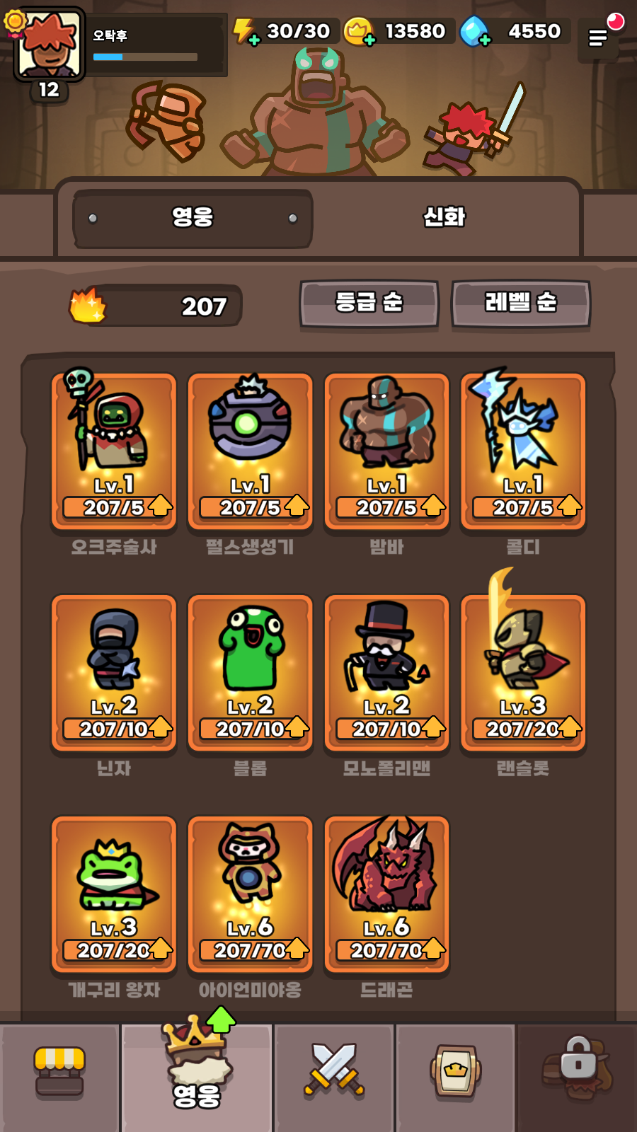 강화의 경우는 이 정도로도 충분히 깨기도하고 나중에 나올 영웅을 생각하여 아직 아껴두고있습니다.
