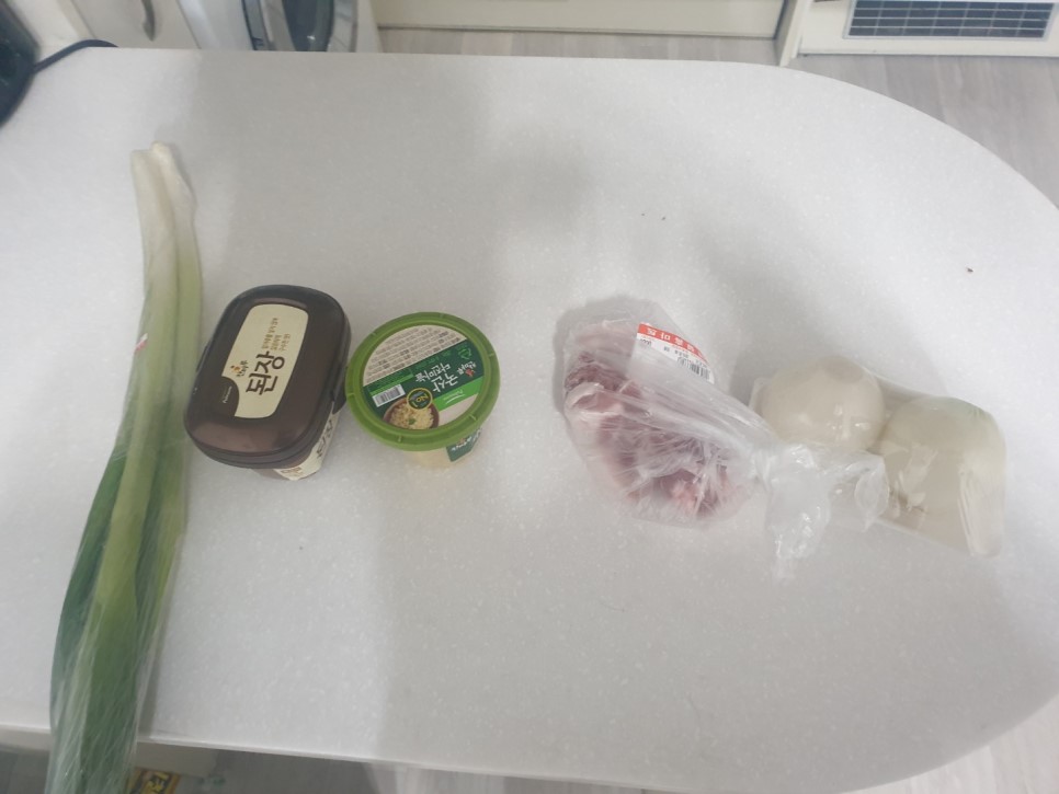 마늘 대파 된장 양파 고기 5개만 있으면됩니다.
