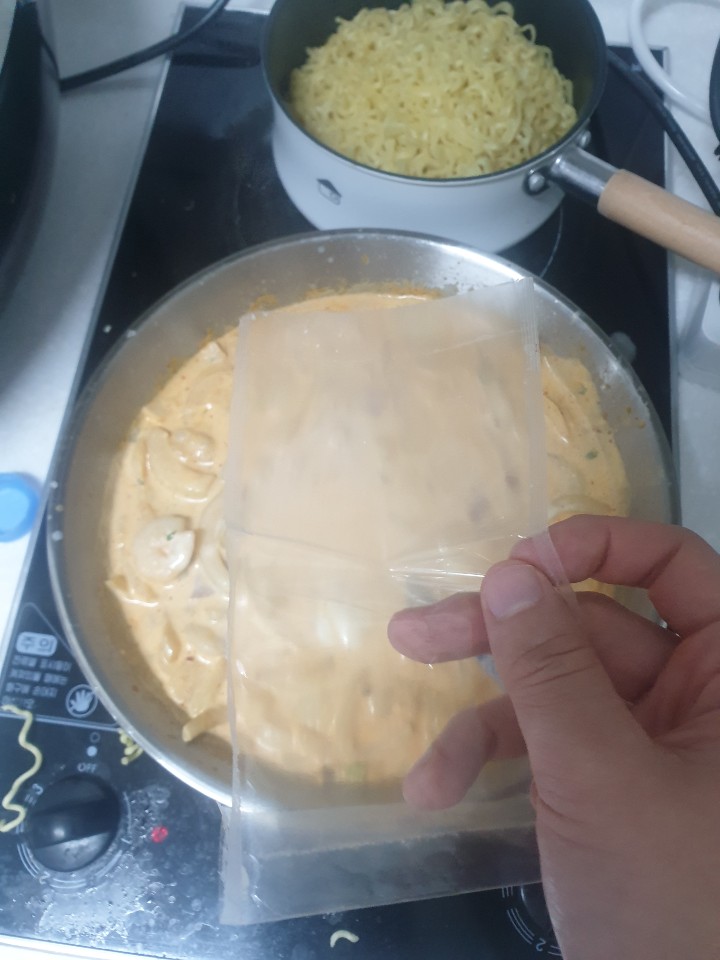 그리고 넣고나서 든 생각이지만 라면 먼저 넣고 그위에 올렸어야하는게 아닌가 싶기도합니다.
